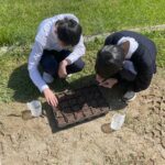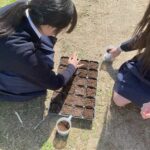4月16日(木)、畜産科1年生が「農業と環境」の授業で、トウモロコシの播まきを行いました。