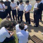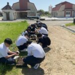 これから本格的に播磨農業高校での農業学習が始まります。(この日は、実習服等の準備が間に合わず制服での実習になりました)