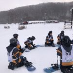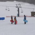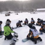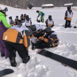 スキー、スノボードスクール開校式後、各班に分かれ実習を開始しました。